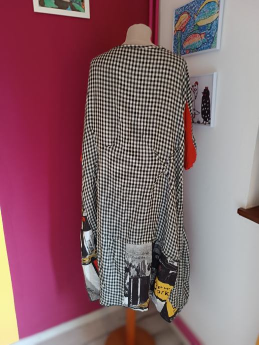 Unikatna zanimljiva haljina rađena od različitog materijala. Ugodan materijal.
