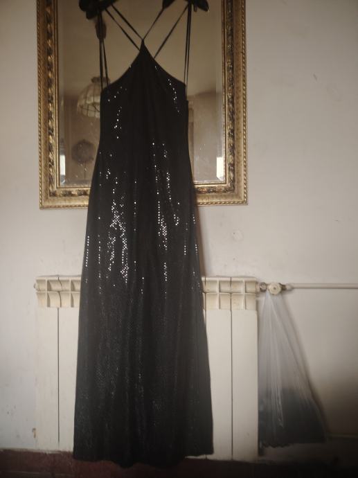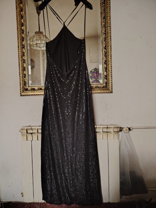 Večernja duga crna šljokičasta haljina s otvorenim leđima s elastinom veličina od M do L