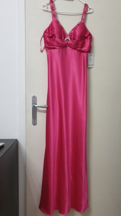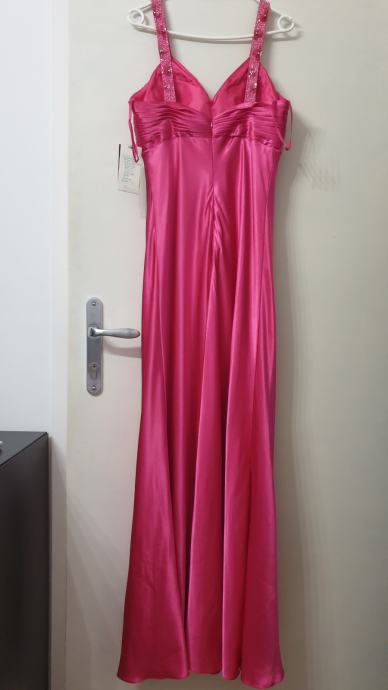 Prodajem rozu vecernju haljinu. Haljina je potpuno nova, nikad nosena. Uz haljinu ide sal za ramena od istog materijala.