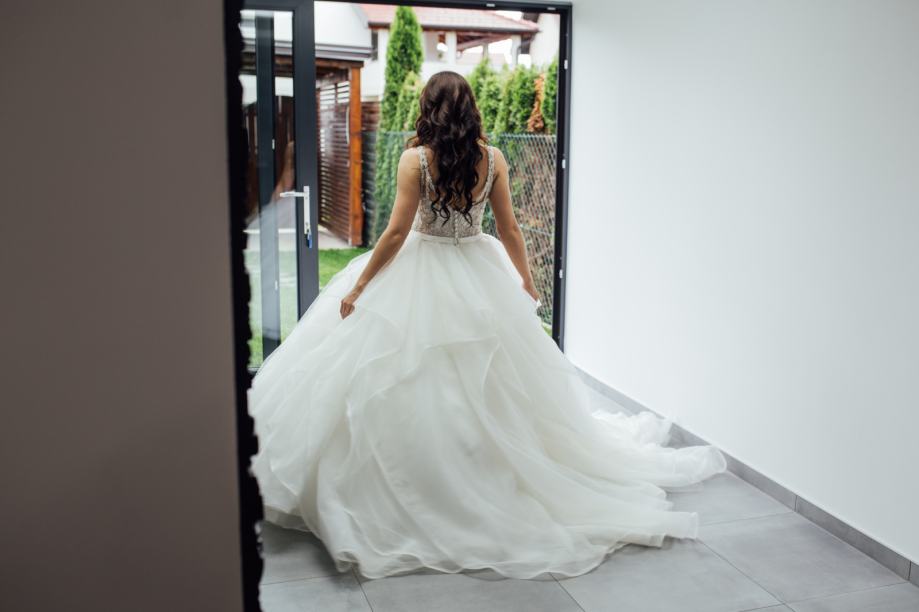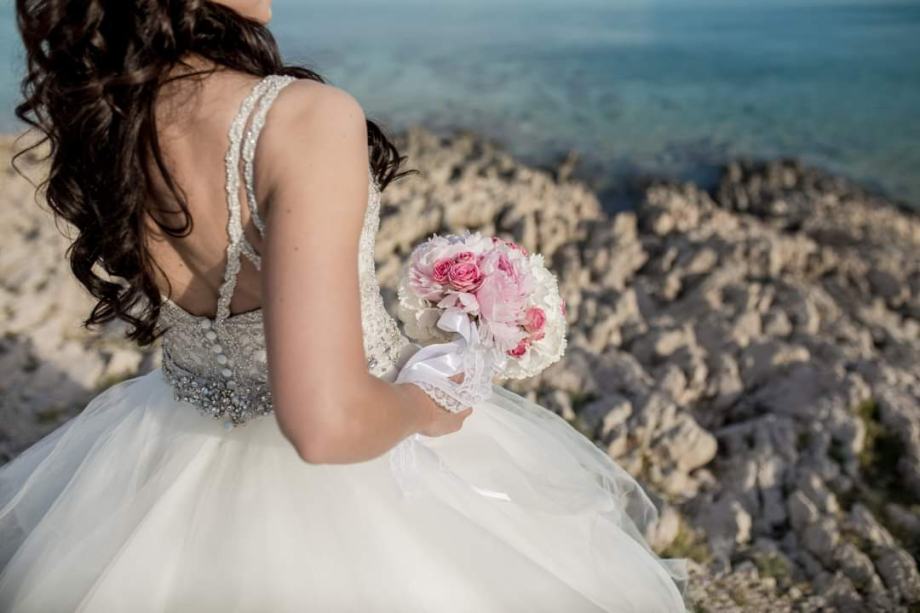 Prodajem vjenčanicu Morilee, Madeline Gardner. Vjenčanica je naručena nova, te je bila prvo nošenje. Nakon svadbe kemijski je očišćena i bez oštećenja. Spremljena je u original navlaci, haljina je lagana i ugodna za nošenje i plesanje. Ima šlep koji se lako prikači gumbićima za haljinu. Korzet je prepun kristalića koje je nemoguće dočarati ovako preko slike.