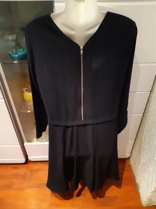 ZARA BASIC tamnoplava haljina A linije, dugi ukrasni patent na leđima, vel. M. Sirina prsa, prednja strana: 47 cm, dužina: 92 cm, rukav: 58 cm. Sastav: viskoza. Haljina je podstavljena.
