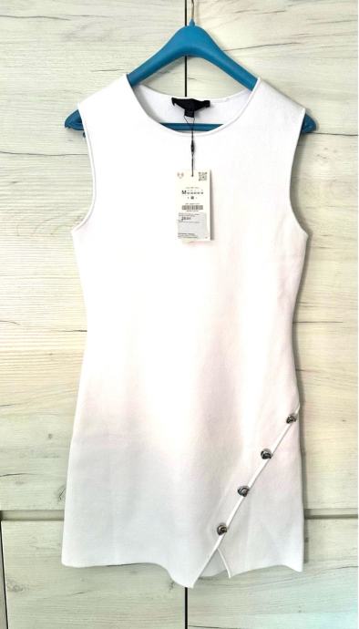 ZARA bijela mini haljina vel. M, novo s etiketom. Lijepo naglašava tijelo, ima ukrasne gumbiće sa prednje strane.