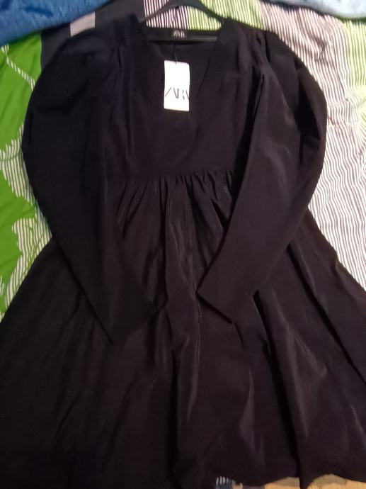 Nova ZARA haljina crne boje s etiketom, veličina 40, savršena za elegantne prilike. Haljina je dugih rukava i proteže se ispod koljena, klasičnog kroja koji pristaje svakoj figuri.