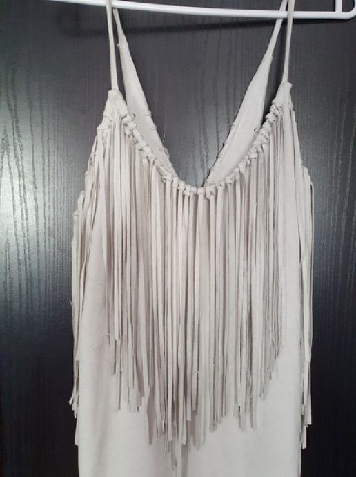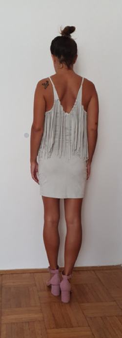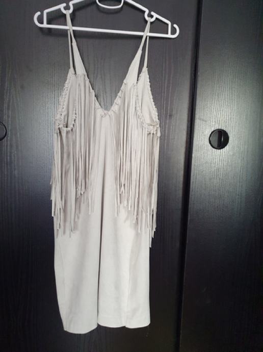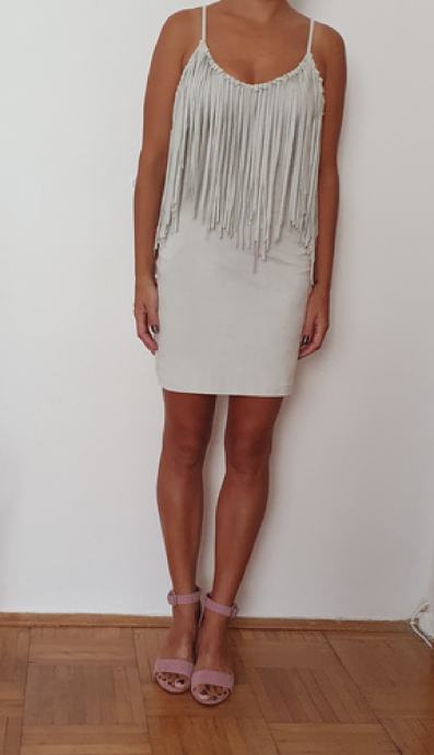 Zara bež haljina,imitacija kože, s resama...nova, niti 1 nošena...vel S,divna i posebna