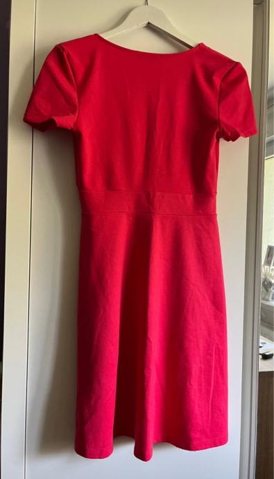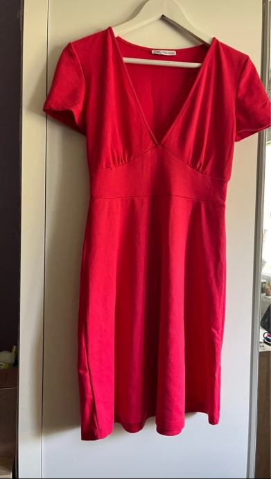 Prodajem Zara haljinu u crvenoj boji, veličina 38. Haljina ima duboki V-izrez, kratke rukave i kroj koji se širi od struka. Stanje je novo bez etikete.