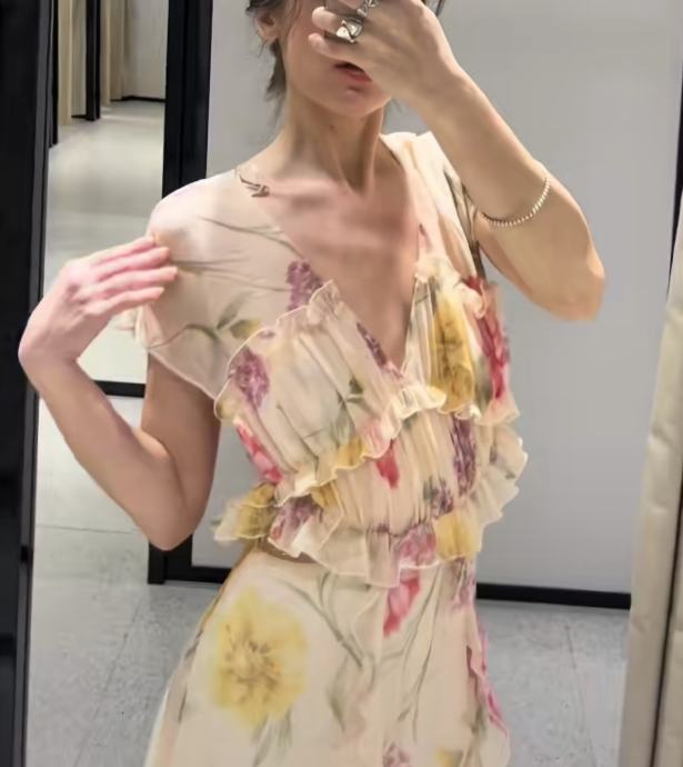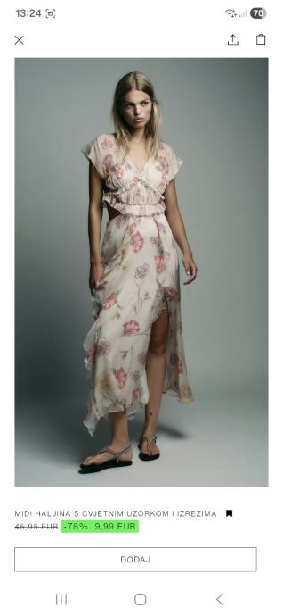 Prekrasna nova Zara haljina, midi duzine, sa otvorima na struku, velicine M, sa etiketom