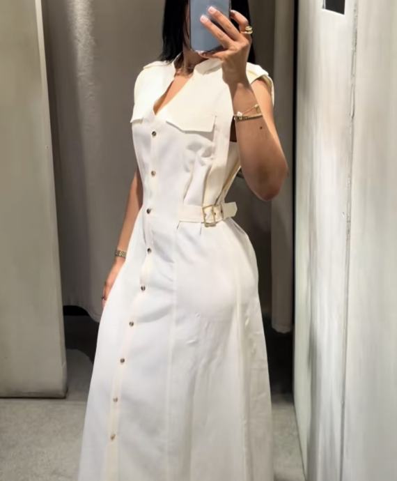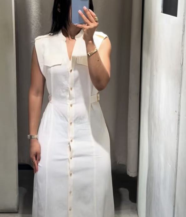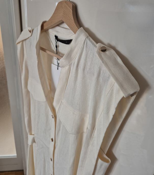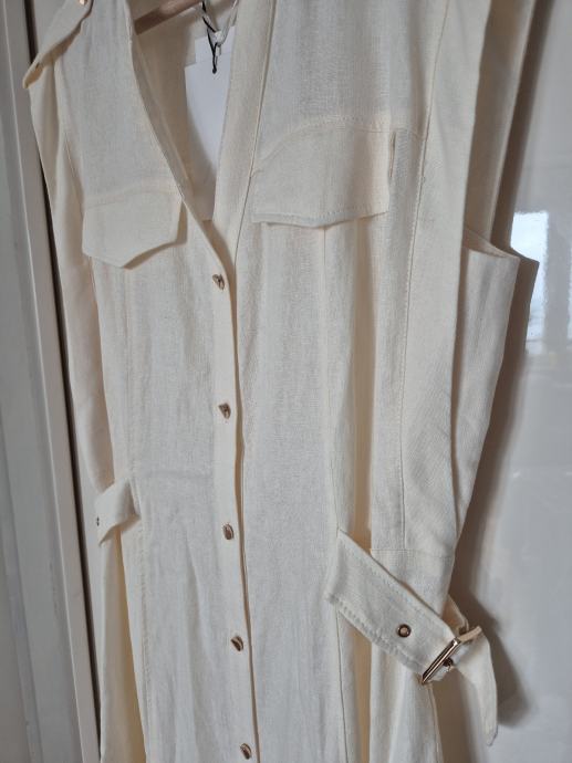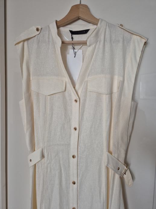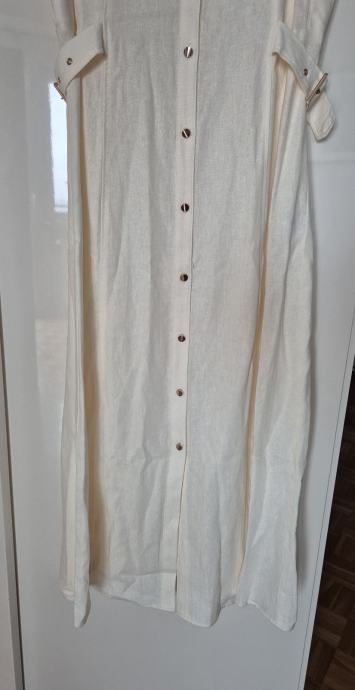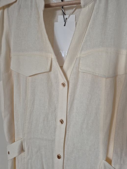 Prekrasna nova Zara haljina, sa remenom u struku, kopcanje cijelom duzinom haljina, velicina M. Sa etiketom. 52% lan, 48% viskoza.
