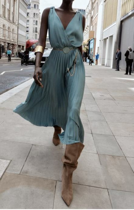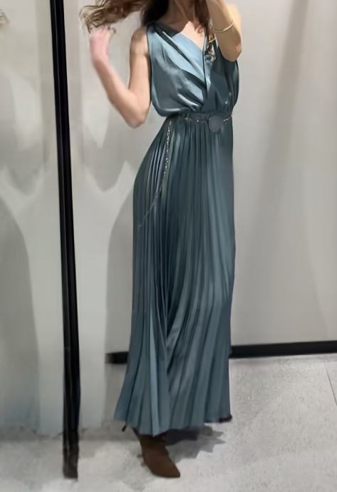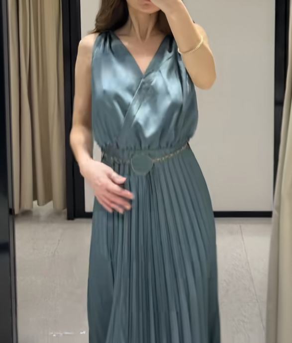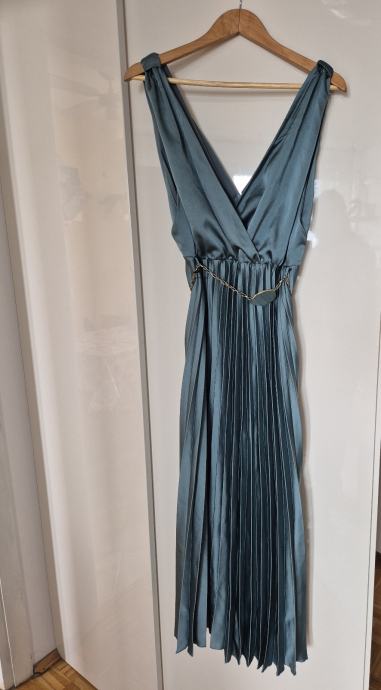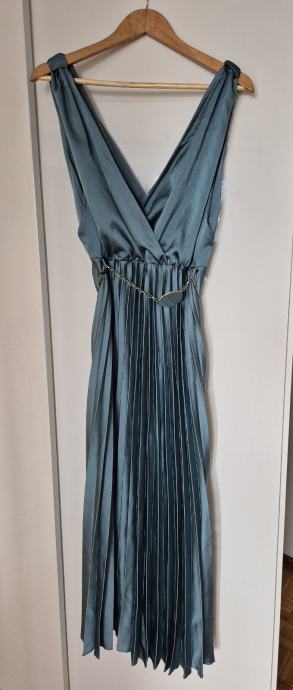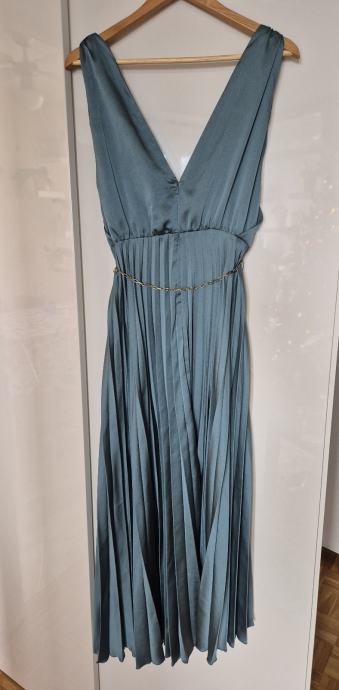 Nova Zara svecana haljina, strukirana, donji dio na falde, sa etiketom i elegantnim remenom, velicina M.