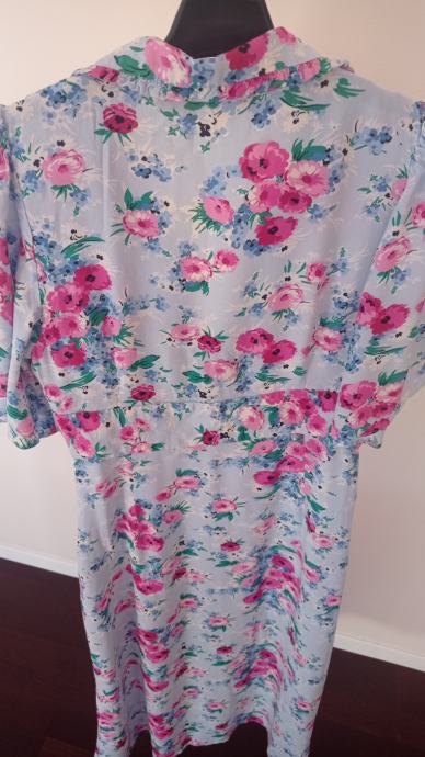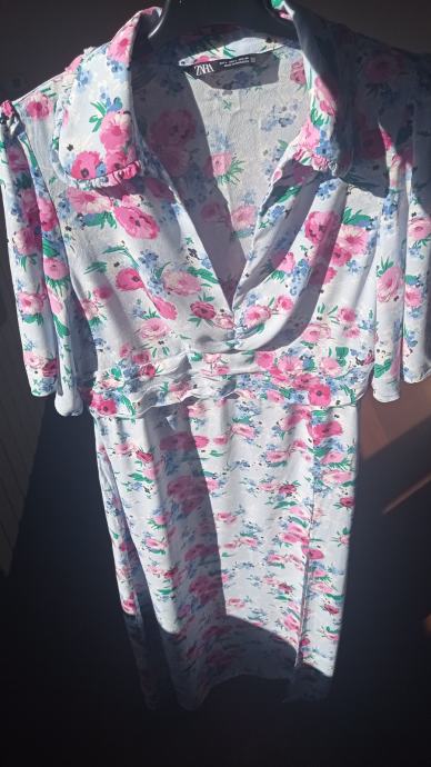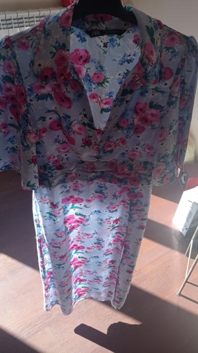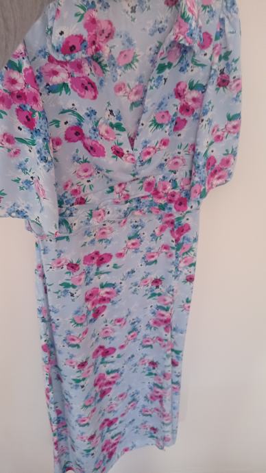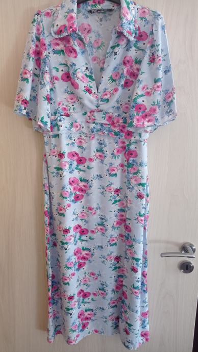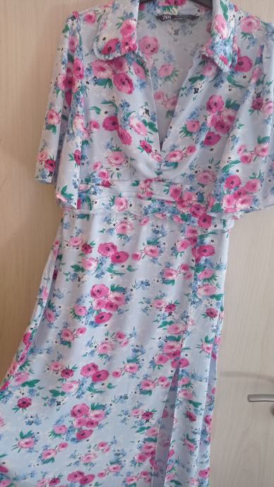 Kao nova prelijepa Zarina haljina, svijetlo plava, lepršava, veličina L upisana, odgovara M i L. Sprijeda ima prorez, nošena jednom. Etiketa odrezana, materijal je viskozni, uglavnom kvalitetniji.