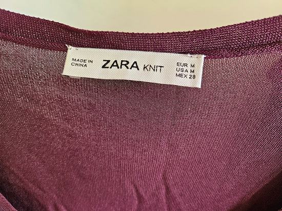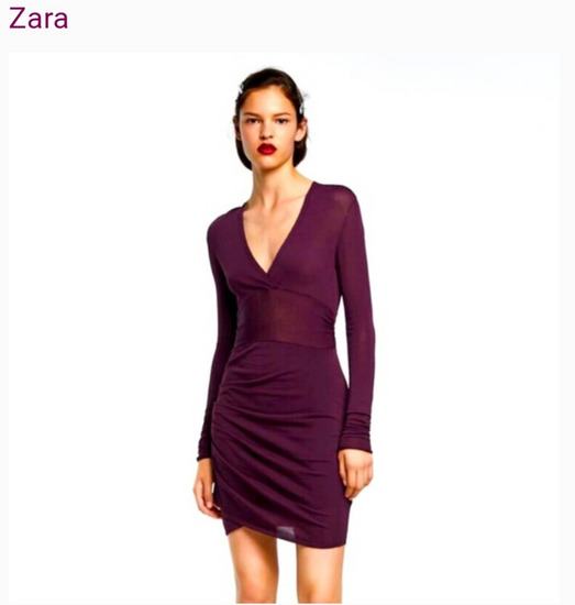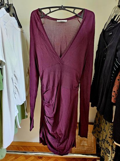 Zara svečana haljina boje šljive, br. M, kratka, uz tijelo, v-izrez, s dugim rukavima, nabrana u donjem dijelu, rastezljiva. Proziran materijal na rukavima i na leđima, uz tijelo je podstavljena i neprozirna. Nošena jednom i od tada samo stoji, u odličnom stanju.