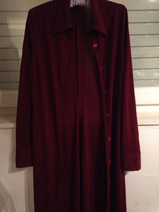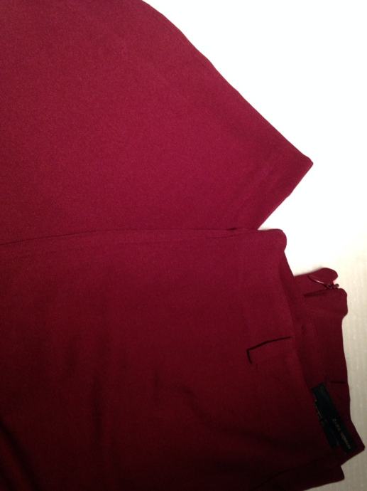ZARA WOMAN zanimljiv set,haljina-košulja i hlače ravnog lagano-trapez kroja...retro look,materijal ugodan,ne gužva se i lijepo pada,....vel.36-38,boja zrele trešnje .. originalna boja seta je nijansa izmedju prve i zadnje slike (zadnja slika je malo tamnija od realne boje)....nenošeno....made in Spain...vintage