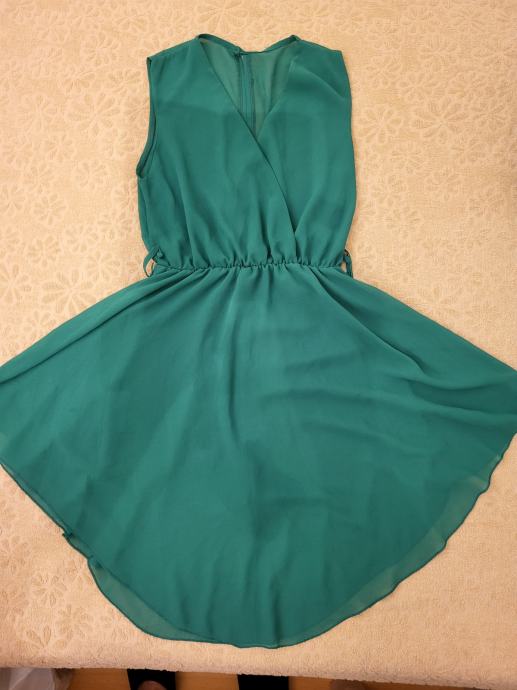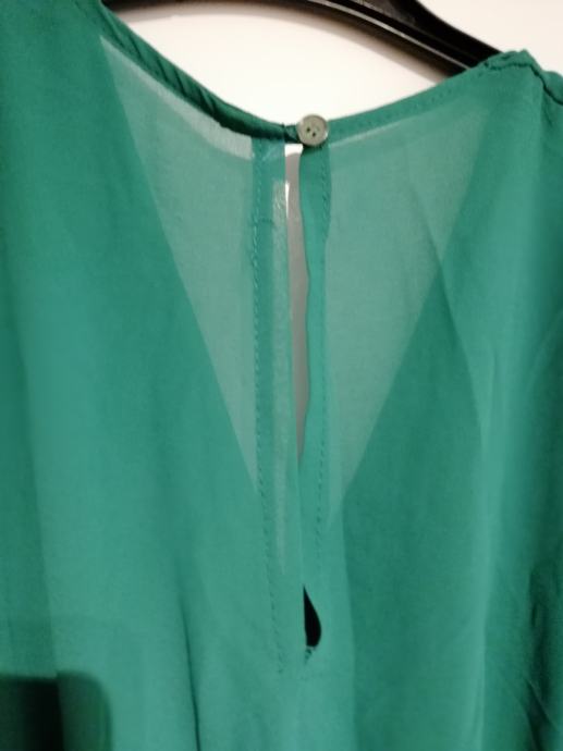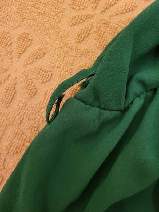 Mjere: širina oko vrata 16,5 cm, dubina dekoltea 15,5 cm, otvor rukava 19cm, širina struka koji ima gumu je 30cm , a kad se razvuče ide do 39cm, dužina haljine je 89cm.