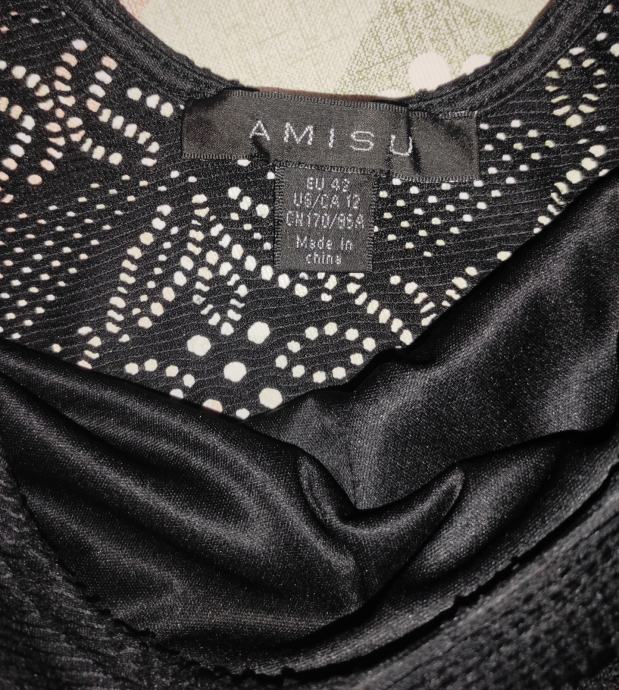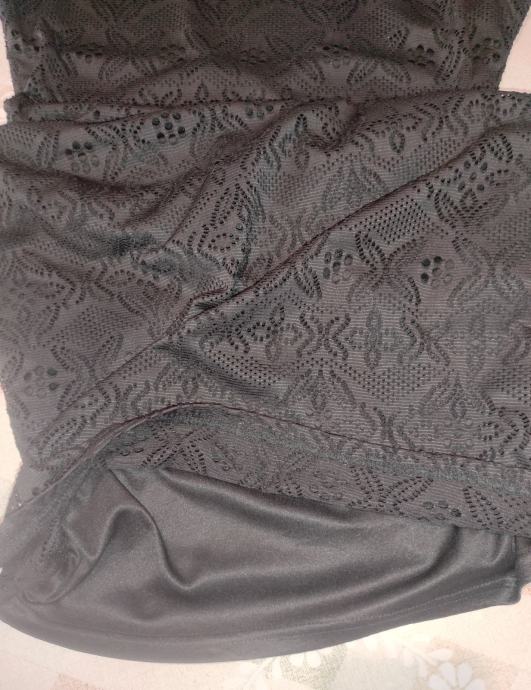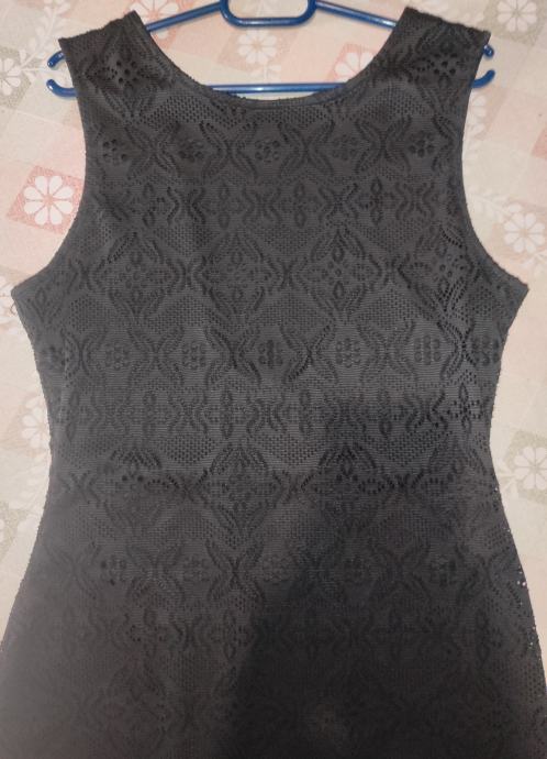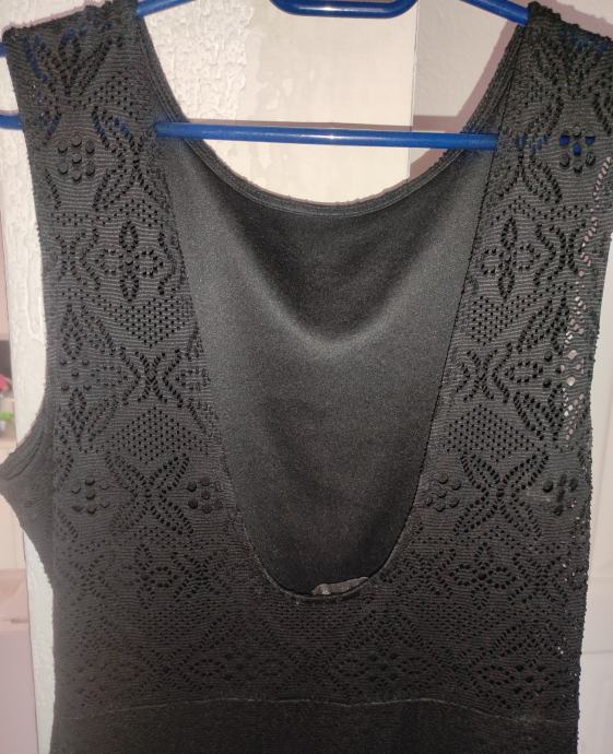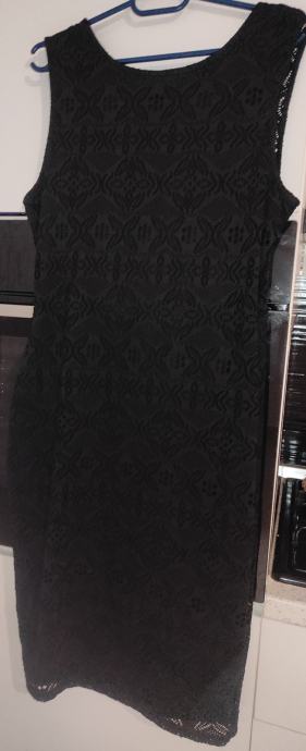 Prodajem novu, jednom nošenu haljinu (na par sati nošena), crne boje, veličina 42, unutarnja strana haljine je cijela postavljena, vrlo ugodna za nošenje, na leđima dijelom otvorena. Duljina haljine je 108 cm.