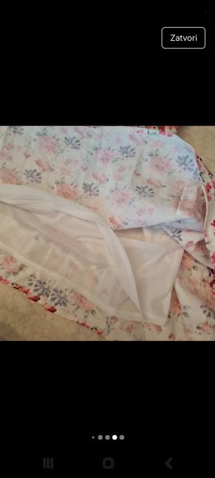 Slatka ženska bijela haljina marke FBSister. Nekoliko puta nošena, ali jako dobro očuvana. Ima patentni zatvarač i podstavu stoga nije providna. Haljina nema oštećenja.