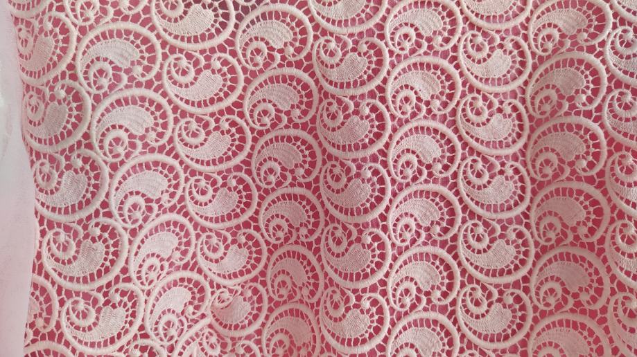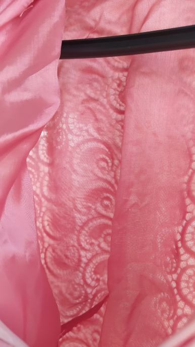 Prekrasna čipka naprijed i dvostruki markizet polyester svila suknja, donji dio haljine, te još svilena roza podstava tako i na prednjem dijelu haljine, svilena podstava
