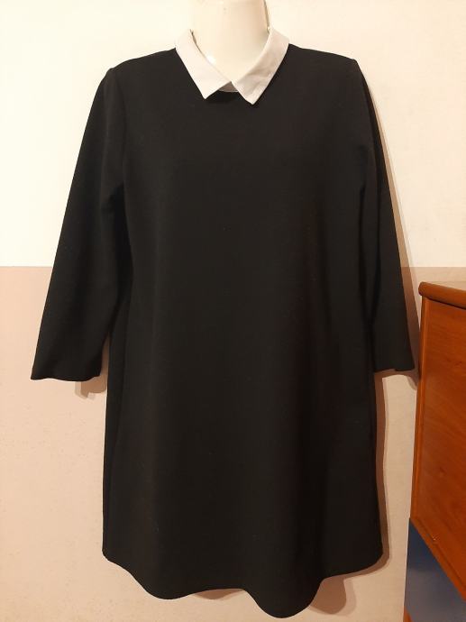 Crna kratka ženska haljina Wednesday Addams marke Zara. 3/4 rukavi. Dužina od vrha ramena do dolje 88cm, širina od pazuha do pazuha 49cm bez rastezanja. Vel. 38-40. Nošena vrlo kratko.