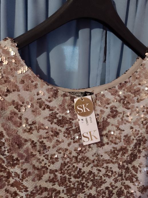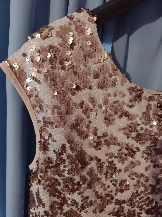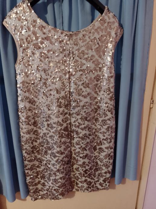 Nikad nosena. Mjere sirina ramena 50cm , sirina prsa 45cm , sirina bokova 49cm i duzina haljine 85cm .