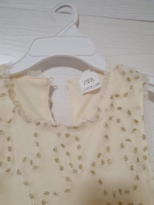 Prodajem žensku haljinu bež boje, univerzalne veličine. Haljina je bez rukava s okruglim izrezom i lepršavim krojem koji pada od struka. Lagana je i prozračna, a tkanina je ukrašena sitnim zlatnim detaljima koji joj daju poseban šarm.