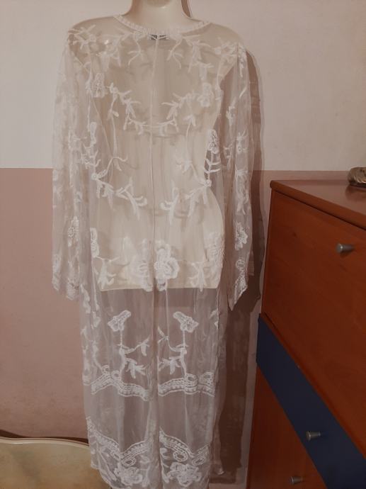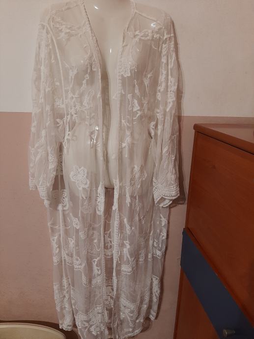 Bijeli ženski ogrtač za plažu. Nošen kratko, bez oštećenja. Vel. XL a može i XXL