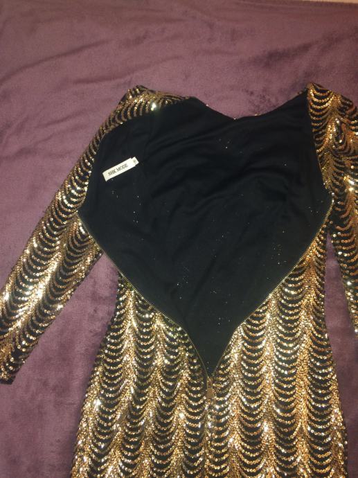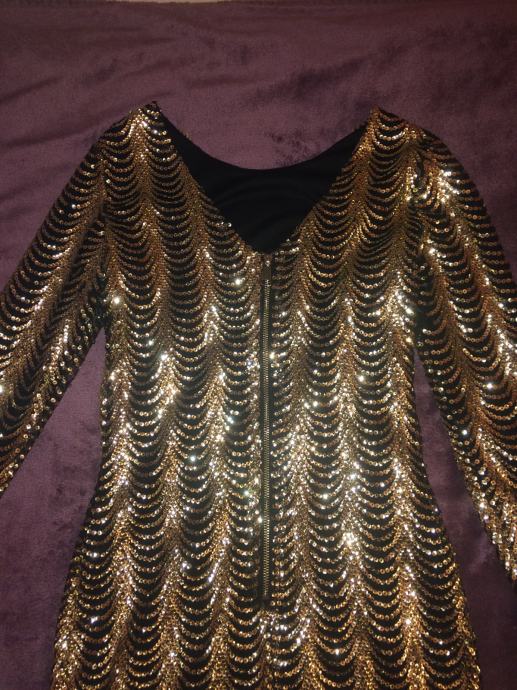 Zlatna haljina do koljena, idealna za doček Nove godine