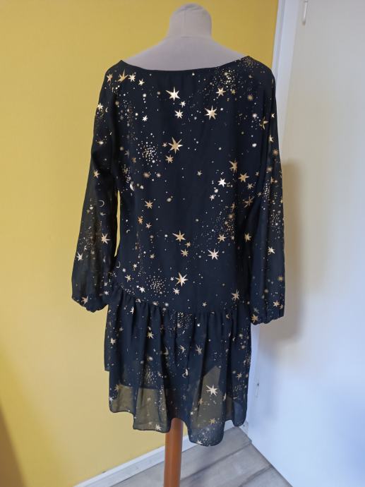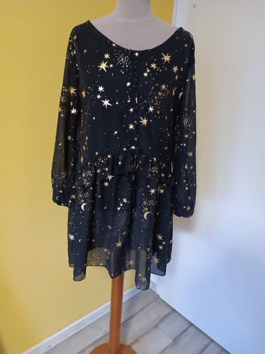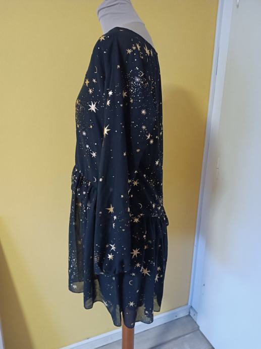Lagana haljinica ili tunika za tople ljetne večeri. Nije prozirna jer ima još jedan sloj. Kopča se sa 7 gumbića na prednjem dijelu. Na prednjem dijelu ima i trakicu i volan. Zanimljiv model.