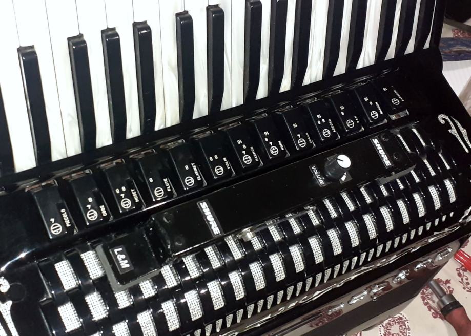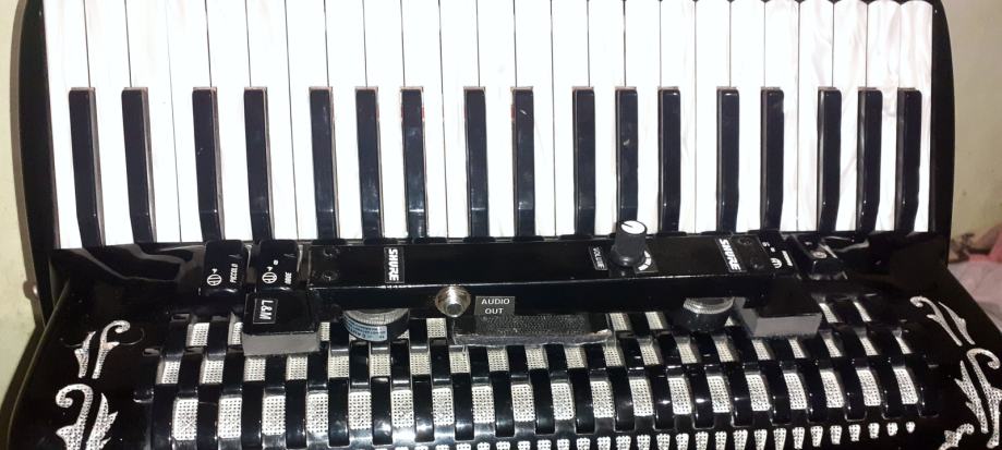 Shure SM58 letva sa dve glave (replika). Letvica za ozvučavanje harmonike sa dve Shure glave, Pričvšćuje se na harmoniku na "Čičak traku" 110 eura dogovor Novo Javite se na mail ili porukom, pa dalje da se dogovaramo. Sretna kupovina!!!