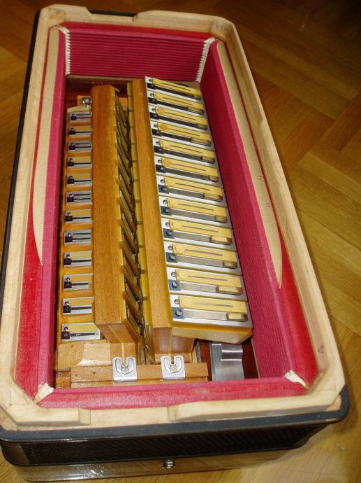 Harmonika Accordiola Piano V Grand Luxe 3+2 120 basova tvorničko stanje basson i picolo u kabini, tonovi typo a mano 12,5 kg 13 registara+bočni master koji se ne ponavljaju kućna upotreba