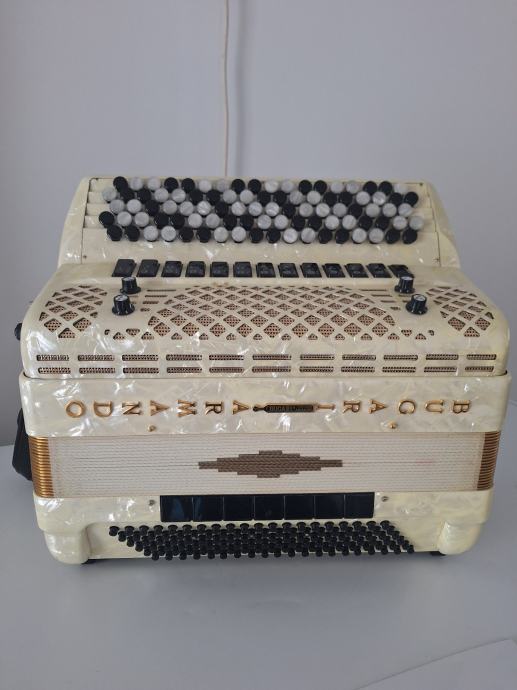 Prodajem Armando Bugari "Gold plus" Sedef u savršenom stanju sa obostranim ozvučenjem,senzori na tonovima,pripadajućim kablovima i orig.Koferom!Harmonika je kabinska 2+2,Cagnoni prvoklasni tonovi,podbradni master plus bočni master!Nikada nije bila u dimu,tonski jako moćna i točna sa odličnim odazivom tonova,plitka i brza tipka,sedef tipka!Pogledaj moje ostale oglase!!!!Samo originali!!!