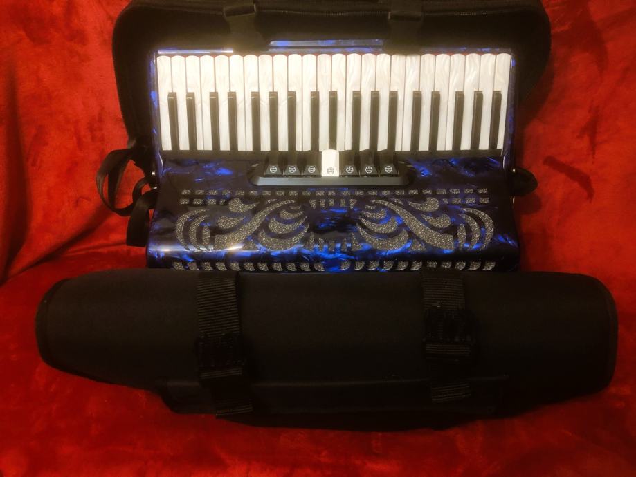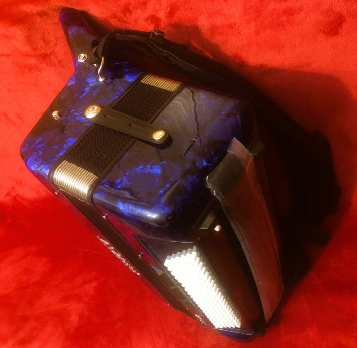 Harmonika je cijela drvena presvučena celuloidom, sa drvenim fasenima, deklo je aluminijsko presvučeno celuloidom - dakle rađena kao što su se nekada radile kvalitetne harmonike.