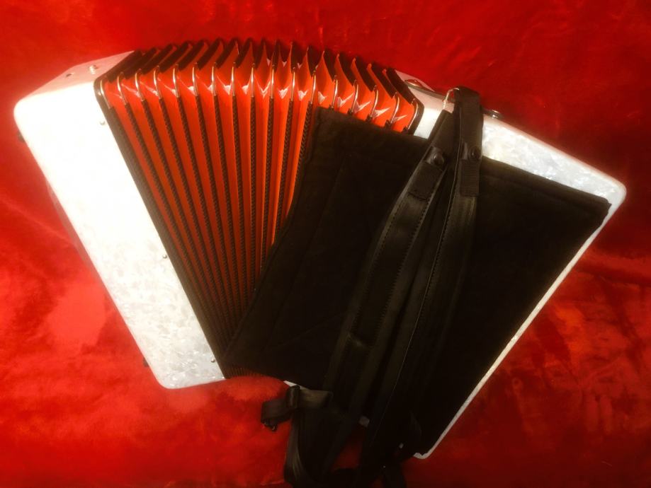 Harmonika je cijela drvena presvučena celuloidom, sa drvenim fasenima, deklo je aluminijsko presvučeno celuloidom - dakle rađena kao što su se nekada radile kvalitetne harmonike.
