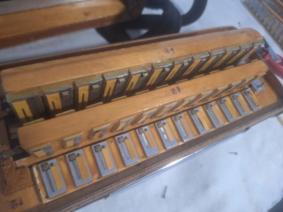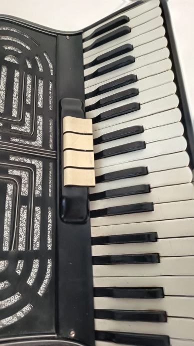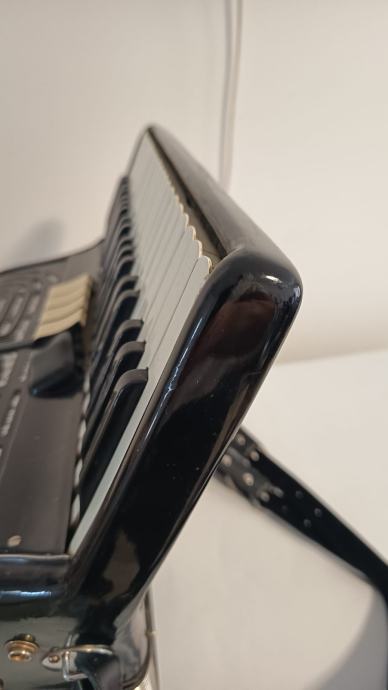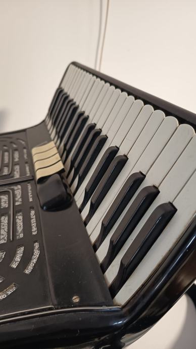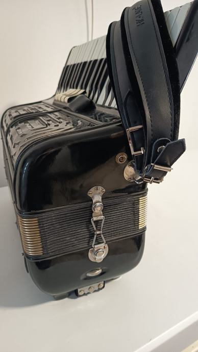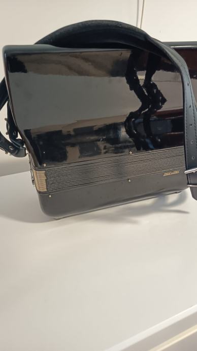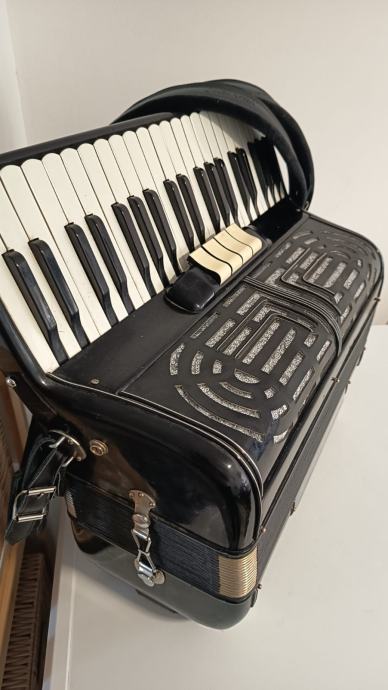 Na prodaju troglasna Borsini harmonika 120 basova u jako dobrom stanju,harmonika je proizvedena 1954 god.i sve je originalno na njoj osim remena novih!U basu je 5-glasna a u primu troglasna i svaki ton je u štimu!!!Harmonika ima i originalni kofer,ima samo 8.5kg i pogodna je i za klince!!!!