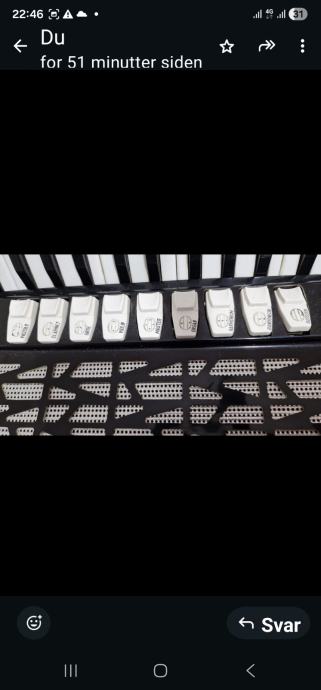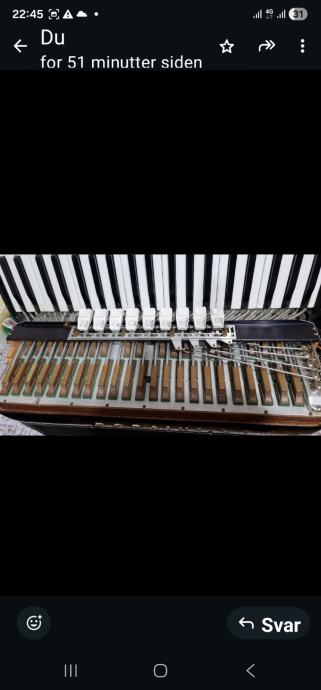 Italijanska četveroglasna harmonika koja ima picollo, organ i violin , što je za našu vrstu muzike poželjno i potrebno. Harmonika je iz inozemstva i kprištena u kući samo kao hobi.