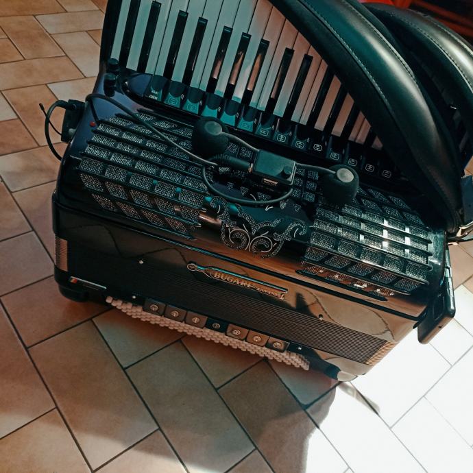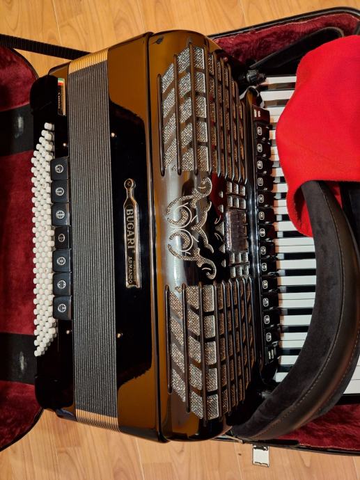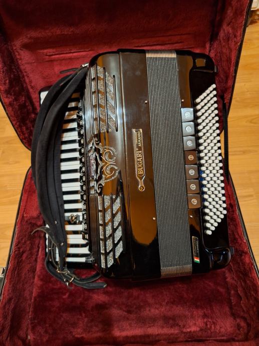 Prodajem Harmoniku Bugari Armando Professional Casotto 120 bas.Harmonika je peteroglasna,Dupla kabina,Original rađena u Talijanskom gradu Castelfidardo,ugodnog nježnog tona sa opcijom Close/Open.Harmonika je kao nova.Prije prodaje napravljen servis,stavljen mekan jastuk za mjeh,svaki ton ispravan.Uz harmoniku dolazi original kofer.Harmonika se može pogledati i isprobati!!Zvati na broj 0996690897