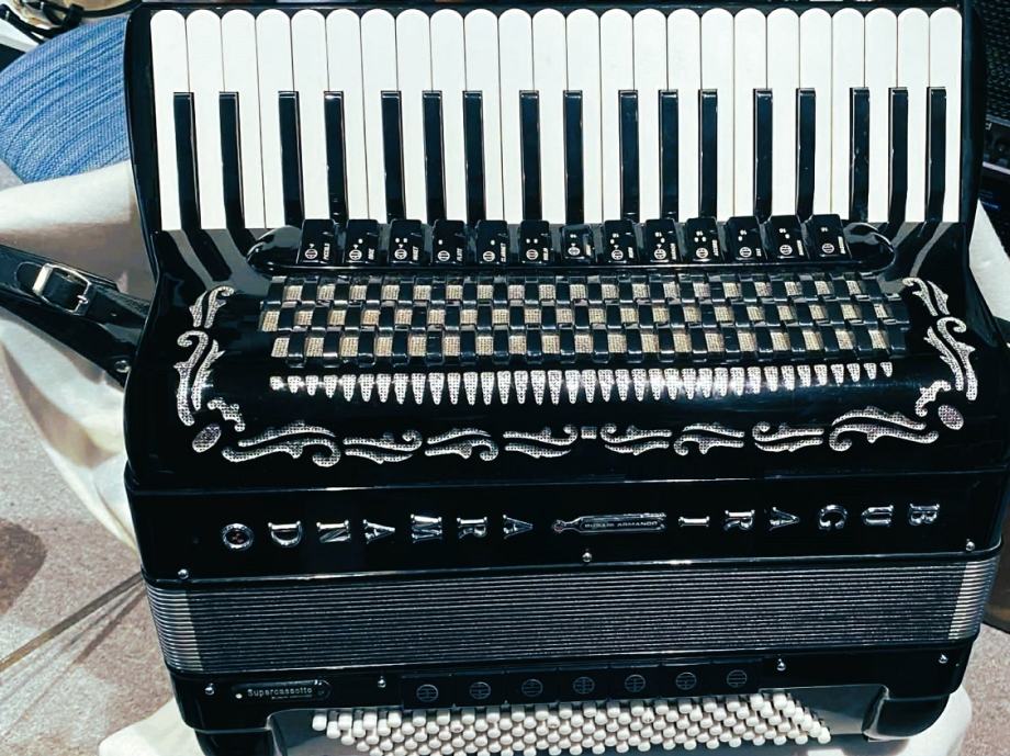 Harmonika Bugari Armando Supercassotto. Proizvedena 1982 godine.Stanje 10/10. Dupla Kabina.