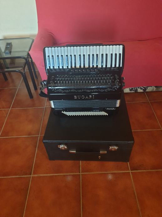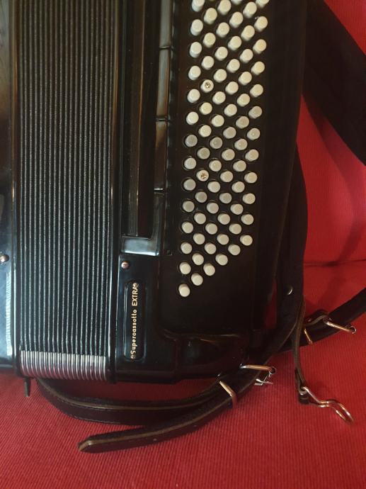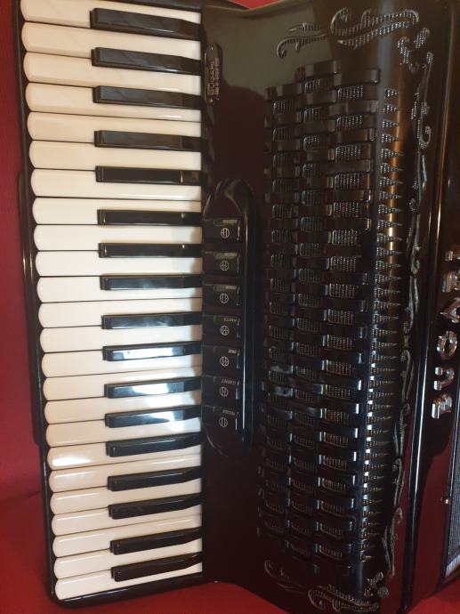 Dupla kabina, prva klasa tonova pikolo stim, kvalitet harm, je extra, klav na dvije osovine 3,glasna u primu 5,glasna u basu,, sve org, na harm, malog formata i lagana. Dihtacija 100%, sa koferom i remenjem u ekstra stanju.