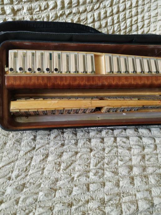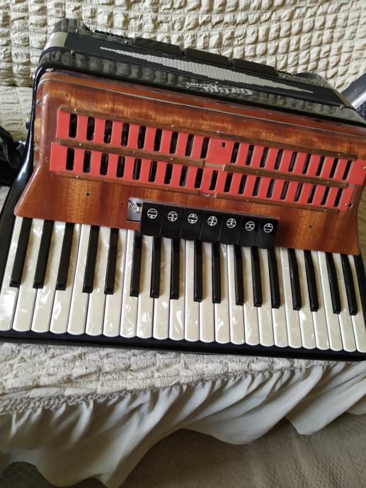 Najlakša dvokabinska harmonika koja postoji..to odgovorno tvrdim, znači ispod 10 kg..Tonski i tehnički fantastičma..Kjavijatura plitka, meka , ugodna.i brza..Dva fasena u kabini.troglasna u primu, petoglasna u basu...Oni kojima ne smeta što nema violin reg. ovaj instrument iskreno preporučujem a naročito onima koji ipuno rade..