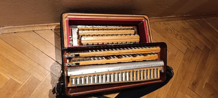 Nije niti siroka a niti 140 basova,pravom kupcu je jasno kako zvuce takve harmonike,ne gusi se,plitka tipka.
