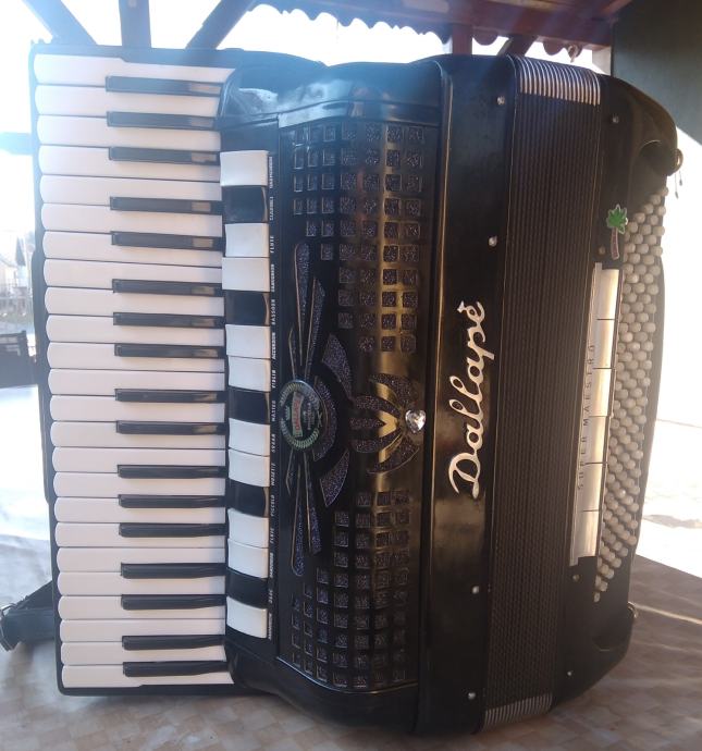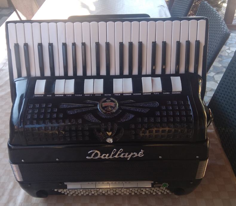Dallape super maestro 2+2 proizvedena krajem šesdesetih godina sačuvana i spremna za sve vrste glazbe. Izuzetno glasna i lijepog zvuka . Cijena 51000 eura. Broj mobitela 091 732 8134