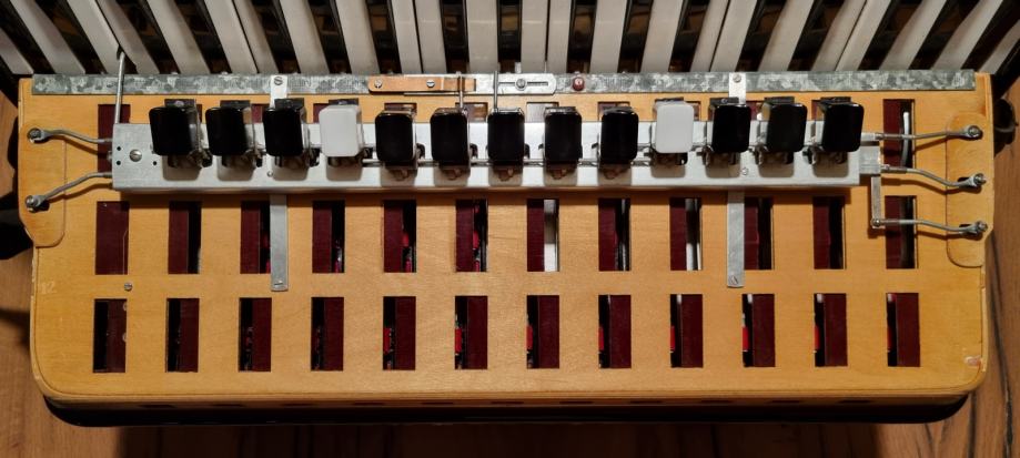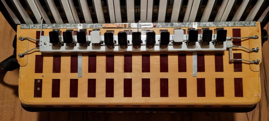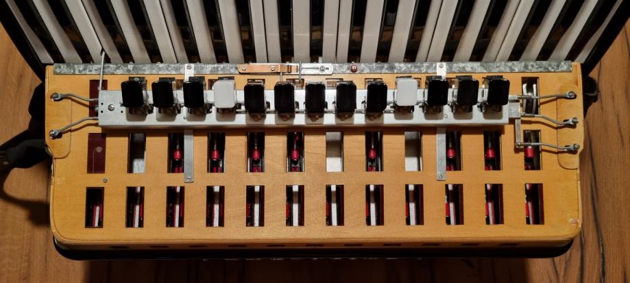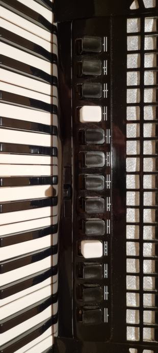 Peteroglasna klavijatura s duplom kabinom i sordinom i peteroglasni basovi.