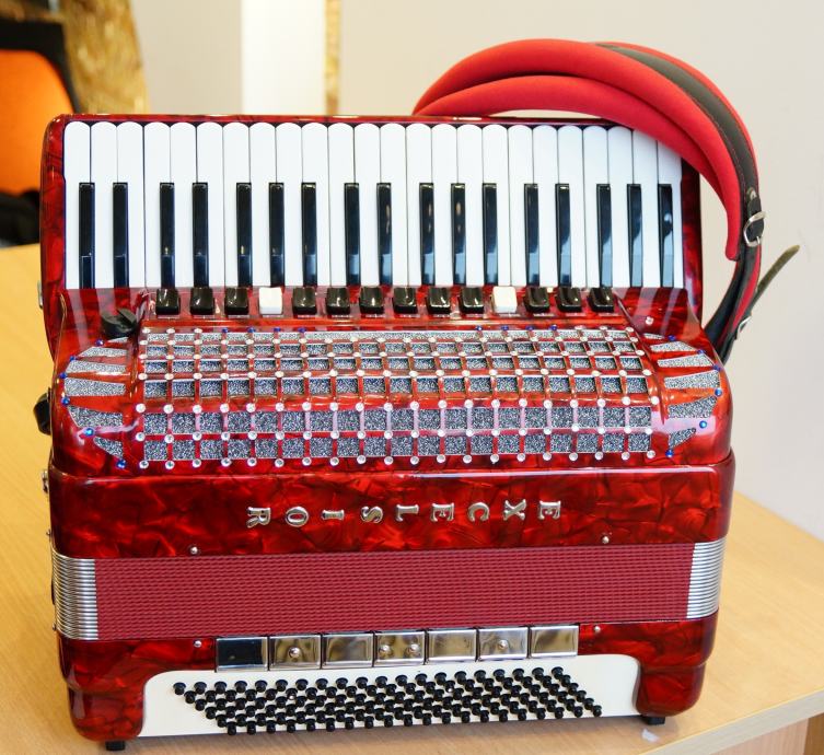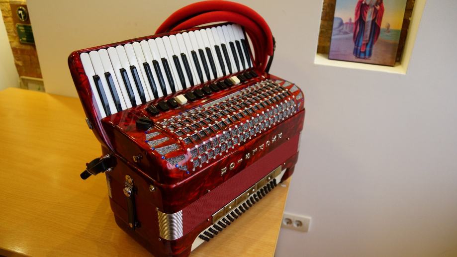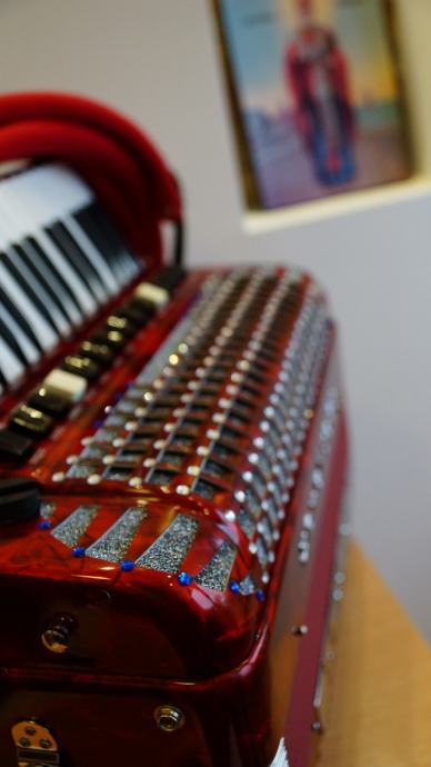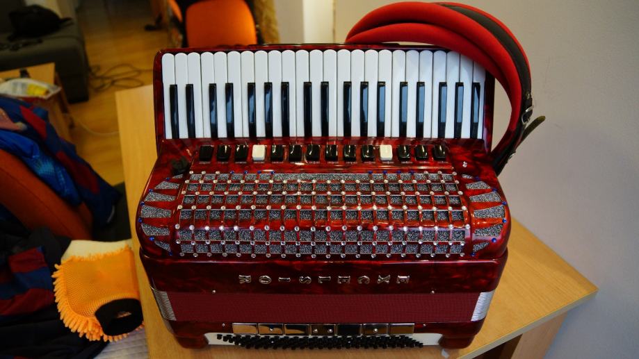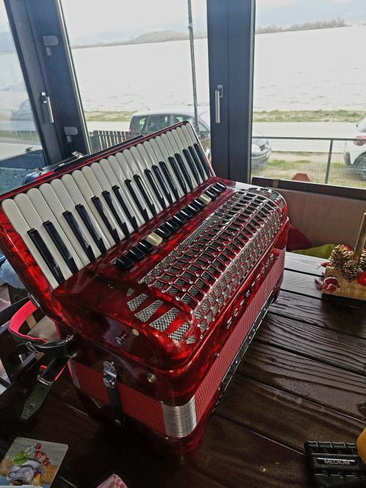 Originalna italijanska harmonika, 1983. godiste, doba kad su se jos uvek tada pravile vrhunske harmonike. Nikad svirana van kuce, iskljucivo cuvana kuci i bez dinara ulaganja. Izuzetno lakoradna i glasna harmonika. Ne umara ni malo.