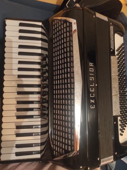 Prodajem harmoniku Excelsior, 120 baseva, četveroglasna, u basu 5-eroglasna, 9+3 registra, novo remenje i bas remen, zaštitni jastučić...stanje odlično..