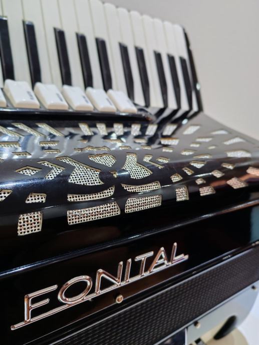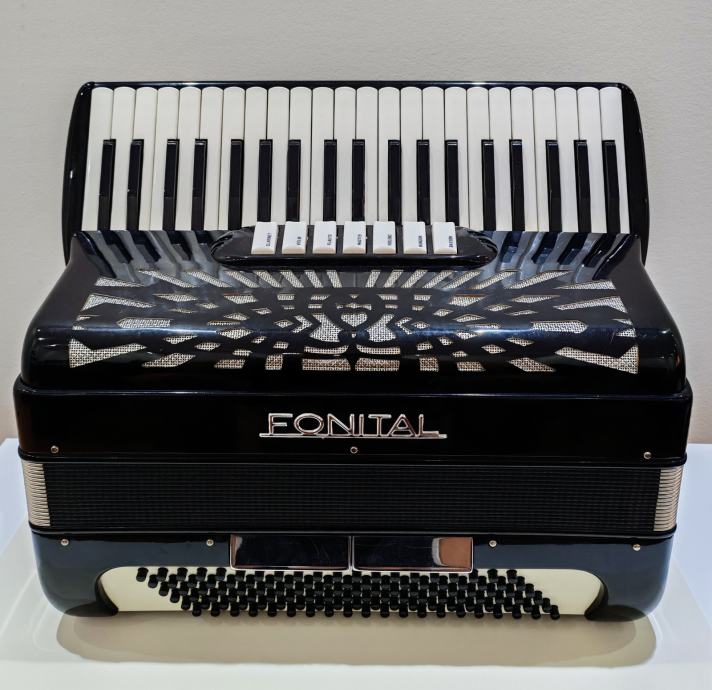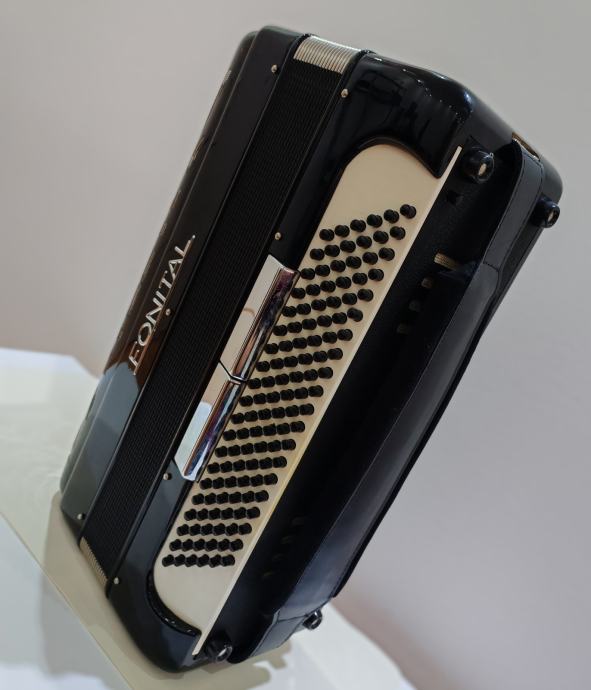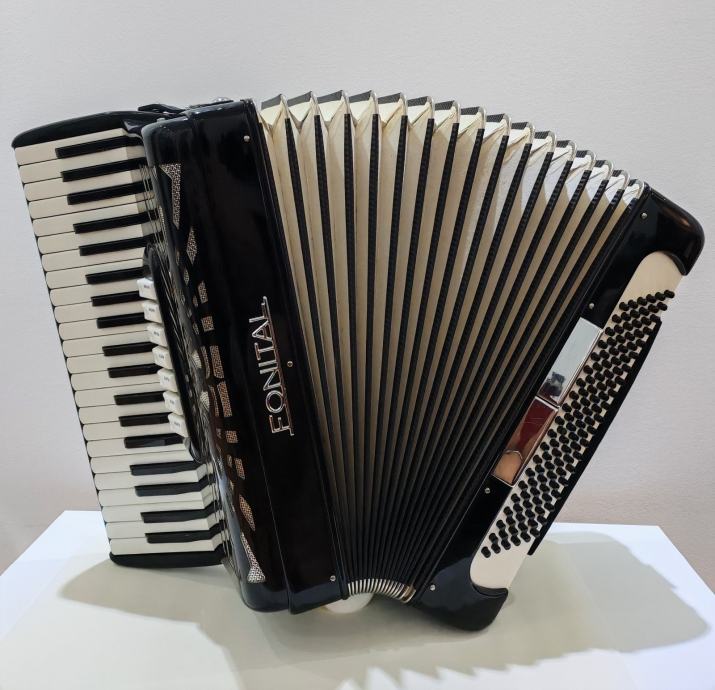 Harmonika Fonital, 120 basova, original talijanska. Troglasna u desnoj, peteroglasna u lijevoj ruci, servisirana i odlično očuvana. Dolazi s tvrdim koferom. Instrument se po dogovoru može doći vidjeti i probati! Za više instrumenata, pogledati ostale artikle na profilu.