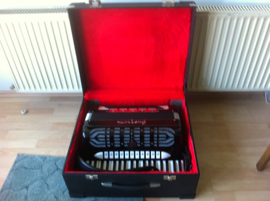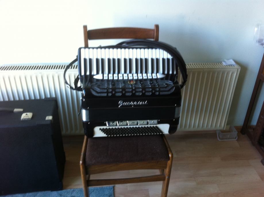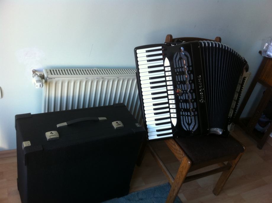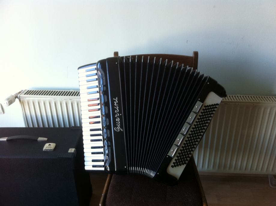 Harmonika Guerrini original talijanka, 120 basova, u odličnom stanju, sa koferom, nije dupla kabina, servisirana u jedinom ovlaštenom i certificiranom servisu za Guerrini harmonike u Slavonskom Brodu kod Veso i Pego j.d.o.o.