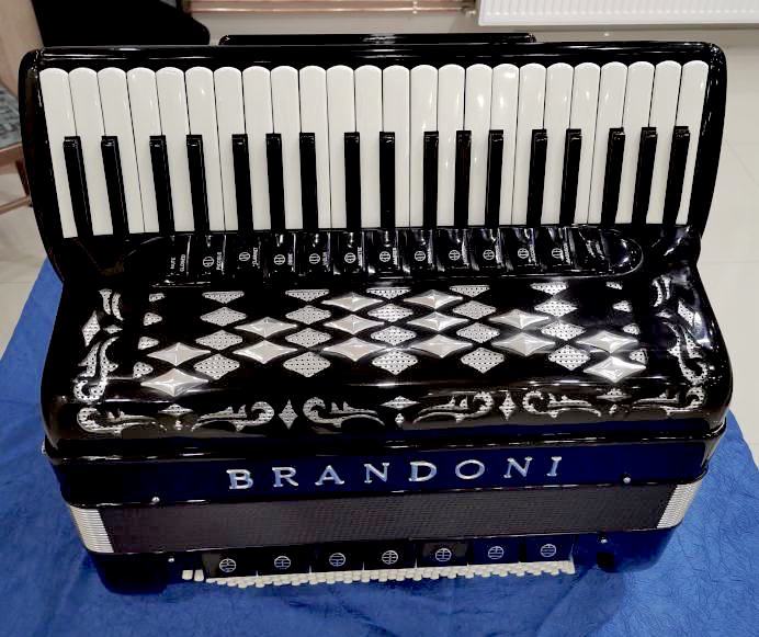 HARMONIKA BRANDONI SONS SUPER PROFESIONALE /120BAS 11/M/7/SORDINA 4/5 GLAS. KAO IZ DUCANA VRH MODEL AMANO I. KLASA TONOVA AMANO ITALY CASTELFIDARDO DUPLA OSOVINA ZA SVU GLAZBU ZAMJENE ISKLJUCENE.