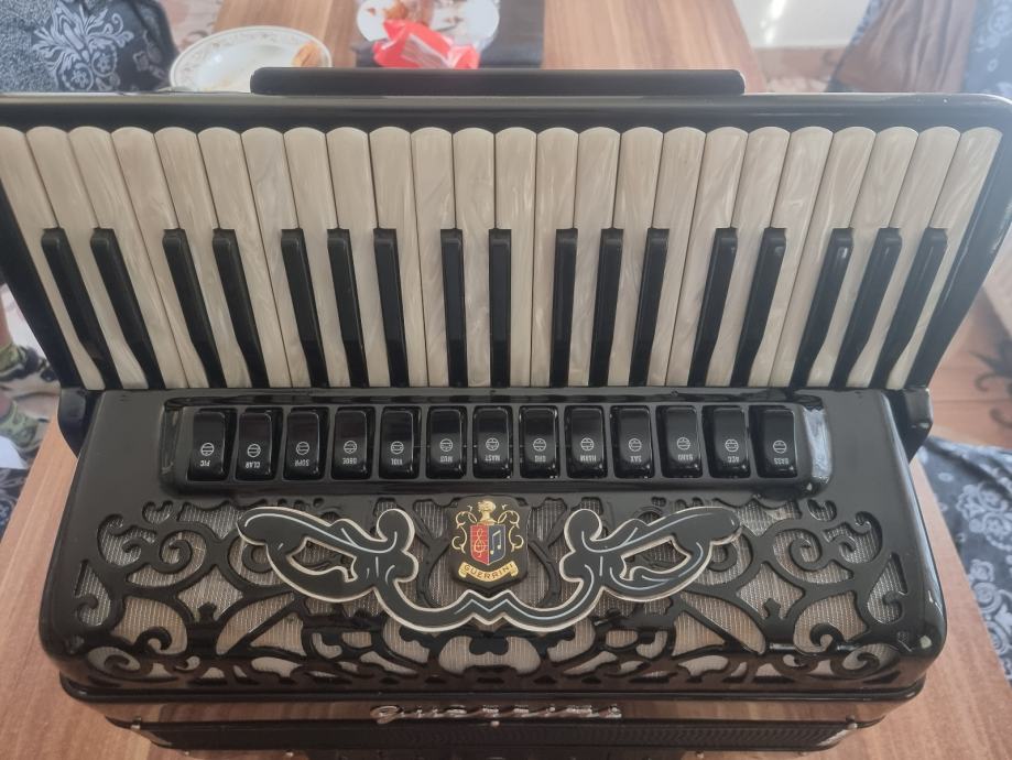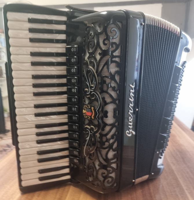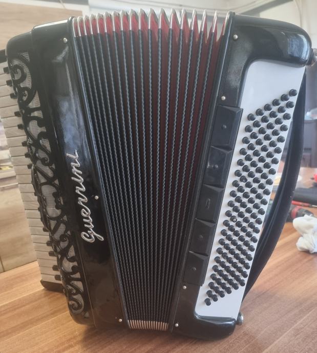 Prodajem Guerrini (Ramses) harmoniku s dvostrukom kabinom 2+2. Cagnoni A mano tonovi, vrlo lijepo stanje s jakim zvukom, dobrim zadržavanjem zraka, balkanskim štimom, širokim naramenicama i tvrdim koferom. Cijena: 2800 eura