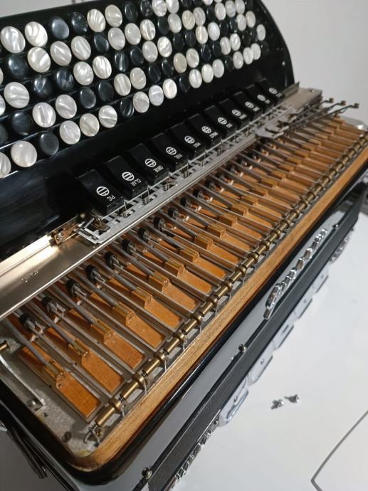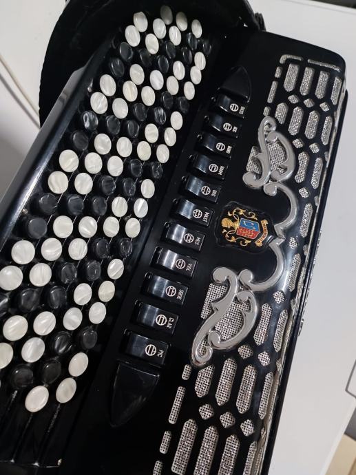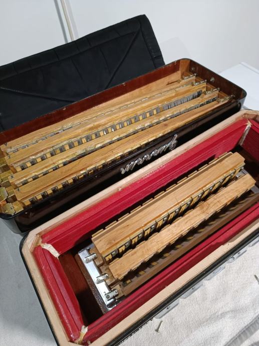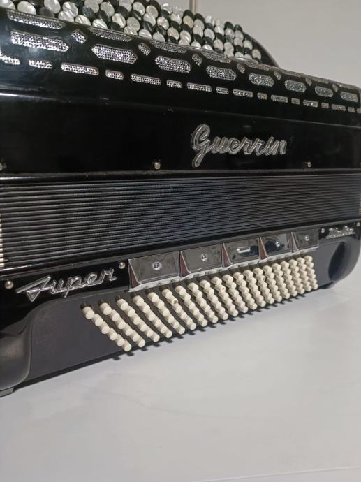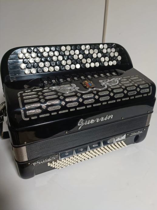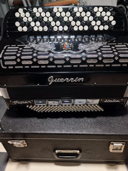 Na prodaju Guerrini originalni super italia četveroglasna,sedef tipke,dihtacija 99%,tonski točna,guerrinski duboko pitomi ton,C grif!Kofer ide uz harmoniku,remenje malo lošije!!!