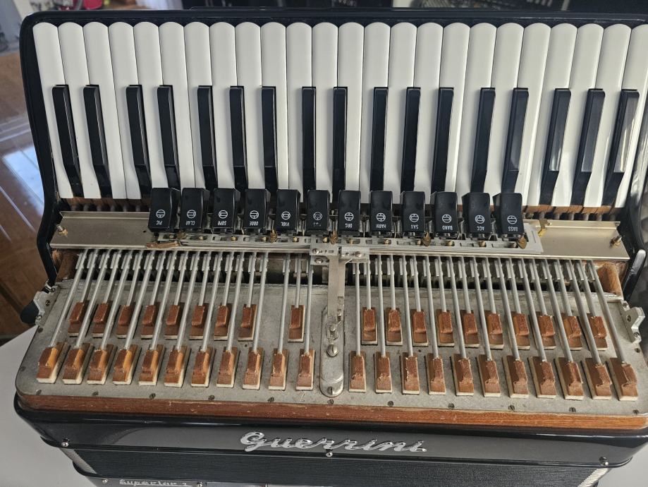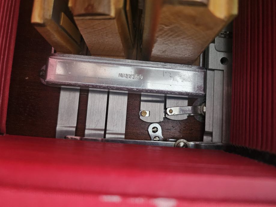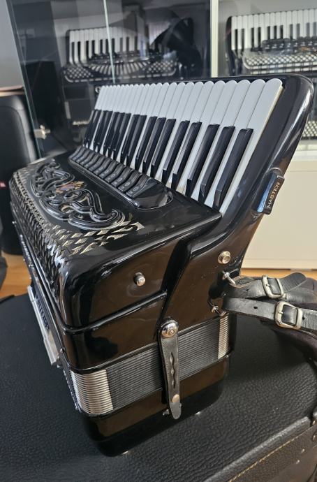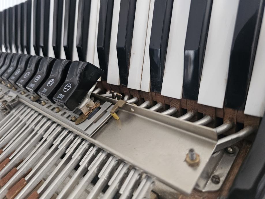 Harmonika u top stanju, stanje kao novo, drvena klavijatura bez greske ( nikad popravljana), obla tipka, orginal nije prerada, tonovi B.N. 85181, harmonika dovezena iz Švedske, te je rađena za njihovo trziste, šareni faseni orginal sa žigovima, orginal deklo sa žigom, apsolutno top stanje, tonski neponovljiva...