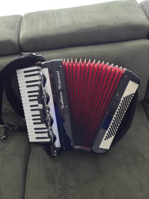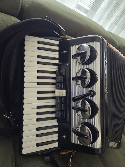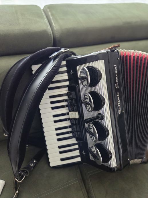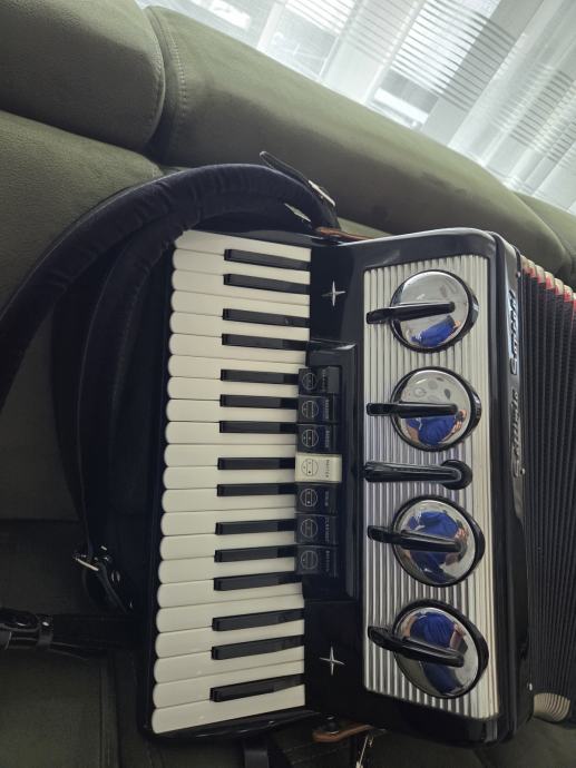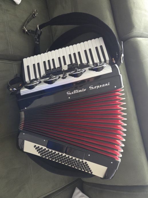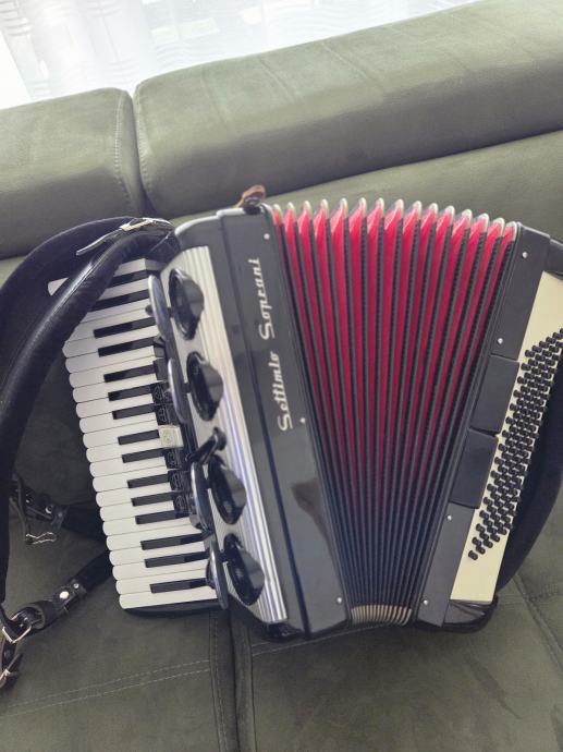 Prodajem Talijansku harmoniku Settimio Soprani 96 basova, harmonika super lagana, nije velika, dosta glasna, crveni mjeh, jastučić, široko remenje nije izderana, dihtcijski i tonski odlična, svirana u kući. Idealna harmonika za glazbenu školu. Može se vidjeti i probati u Bizovcu. Moguća dostava za Osijek i okolicu. Ne šaljem poštom samo osobno preuzimanje. 1400e