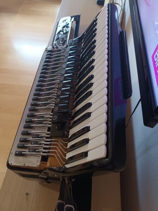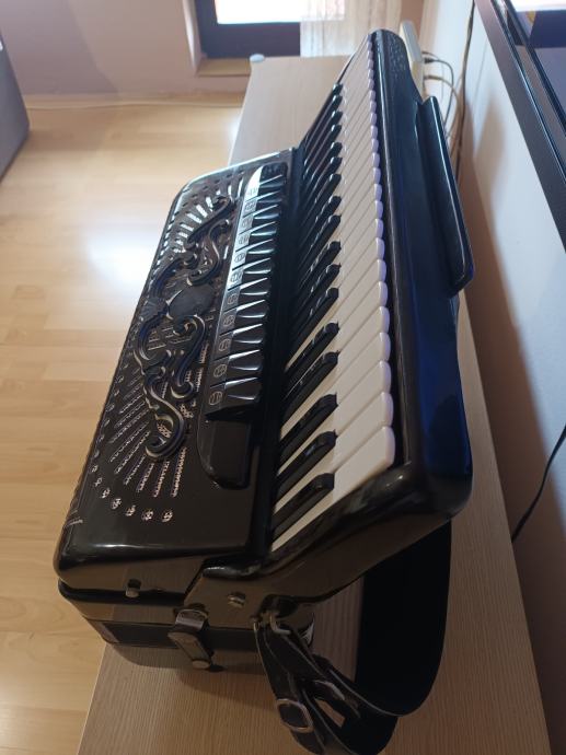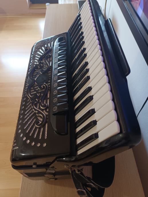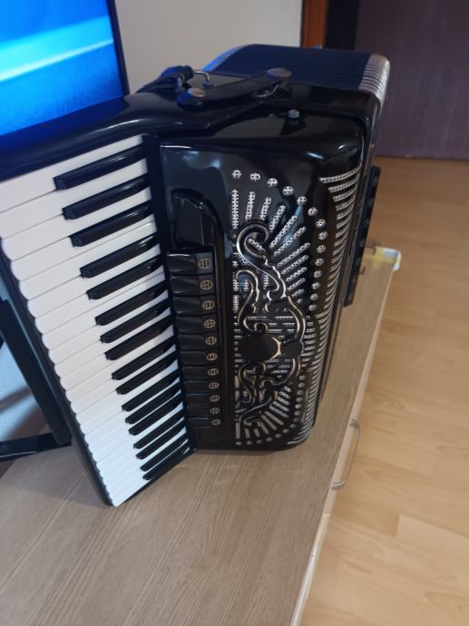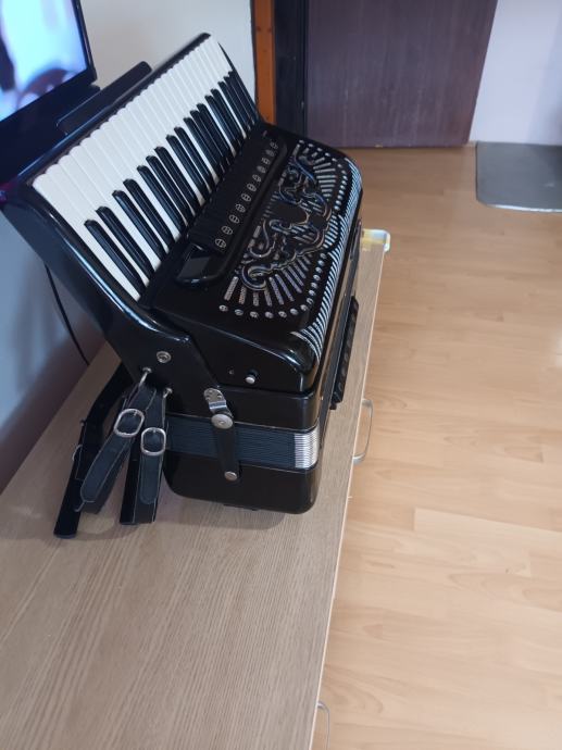 Licencirana kopija Scandalli 2+2 dupla kabina,11+M+7+M registara,četveroglasna prim,bas peteroglasna,120 basova.Odlična kabinska harmonika sa talijanskim bas mehanizmom i tonovima.U harmoniku nisu potrebna nikakva ulaganja.Korpus 19 cm,plitka i mekana tipka za sviranje,crni mjeh,kofer.Prodajem bez zamjena.098571714