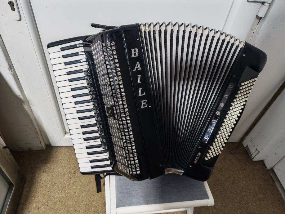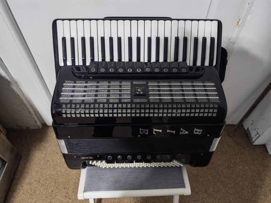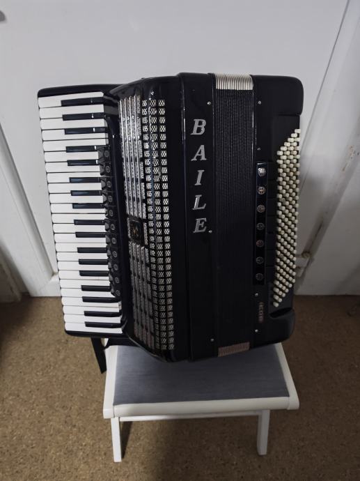 Baile je kineska kopija Scandalli harmonike.Dupla kabina,Balkan štim.Talijanska bas mehanika, harmonika zvuči bolje od puno talijanskih originala.Servisirana te je potpuno ispravna.